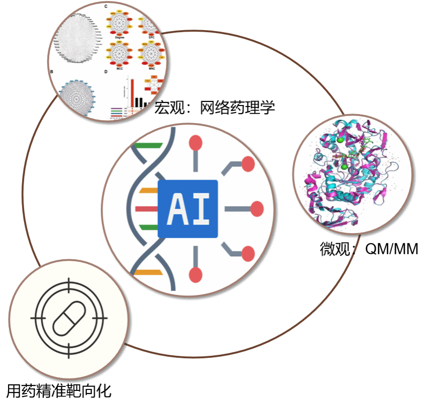 基于“网络药理学-AI-QM/MM”三联策略,宏观层面以 AI 处理高维靶点-通路数据,微观层面以量子力学/分子力学(QM/MM)耦合计算解析活性成分与靶点的精细相互作用,为新方发现提供量子级证据,实现经验用药向精准靶向的转化。
