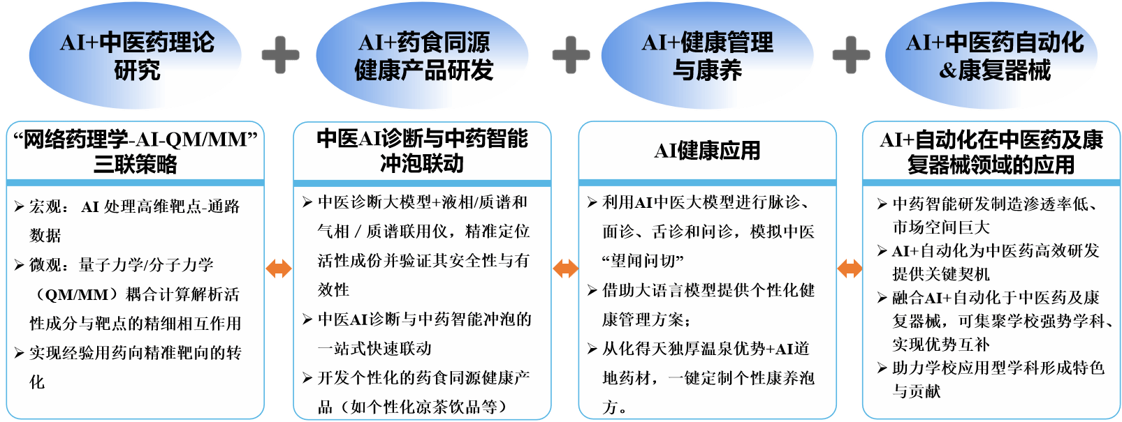 中心聚焦于“AI+中医药理论研究”与创新应用,通过构建AI+中医药理论研究、AI+药食同源健康产品研发、AI+健康管理与康养、AI+中医药自动化&康复器械,系统推进中医药的数字化与智能化转型。我们旨在建立一套集感知、认知、协作与管控于一体的技术闭环,为中医药的科研创新与产业应用提供强大支撑。